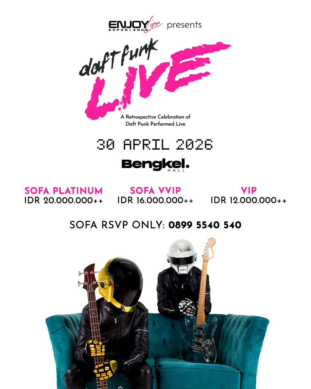 “Melalui Daft Funk Live, kami ingin menghadirkan pengalaman yang bukan hanya sekadar konser, tetapi sebuah perjalanan nostalgia yang sarat energi elektronik ikonik. Ini adalah kesempatan bagi penikmat musik di Indonesia untuk merasakan atmosfer konser Daft Punk secara live dengan standar internasional,” ujar Dino Hamid, Founder sekaligus Creative Director Enjoy Live Experience dan ImaginAction.